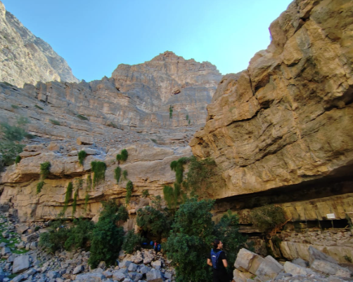 Although it is a short distance of scenic wadi walking to reach the main Hanging Garden, it will take a lot longer than you think as it is climbing boulders and scrambling around trees and rocks, so its a very slow walk. This version avoids the steeper scree slopes and vertical wall that follow, instead returning along the same accessible stretch through shaded canyons—ideal for new hikers seeking beauty without the worry of the steep scree slopes that come along with the more challenging version of this hike.