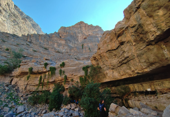 Distance & Duration of the Hike: Approximately 4-5 KM in and out, with very little elevation gain, this will still take about 2½ to 3 hours up the rocky and bouldery wadi to reach a dramatic viewpoint, climb to the cliff viewpoint and return to our cars.