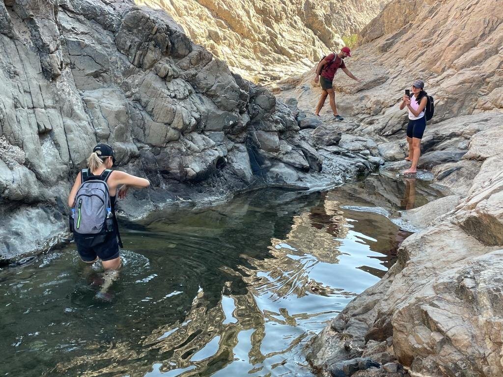 Trail Description: We start at the hiking trail for half of the hike, and drop down into the wadi for the Gorge Pools experience before we walk back up to complete the mountain loop for a full 4 hours trek.
