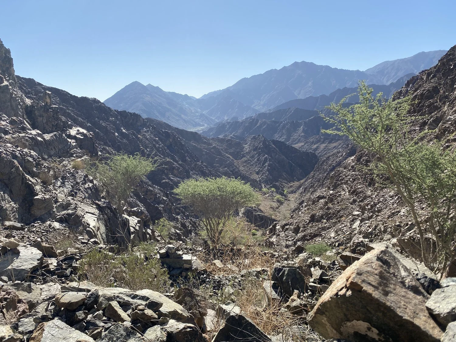 Join us in hiking through this tranquil gorge with water always flowing threaded by crystal-fed pools and striking rock formations, We wind through shaded wadi pathways, (all shaded especially in the morning, allowing us to start a bit later. Gently climb to a serene summit marked by a UAE flag, and soak in sweeping views of fertile farms and rolling Hajar ridges.